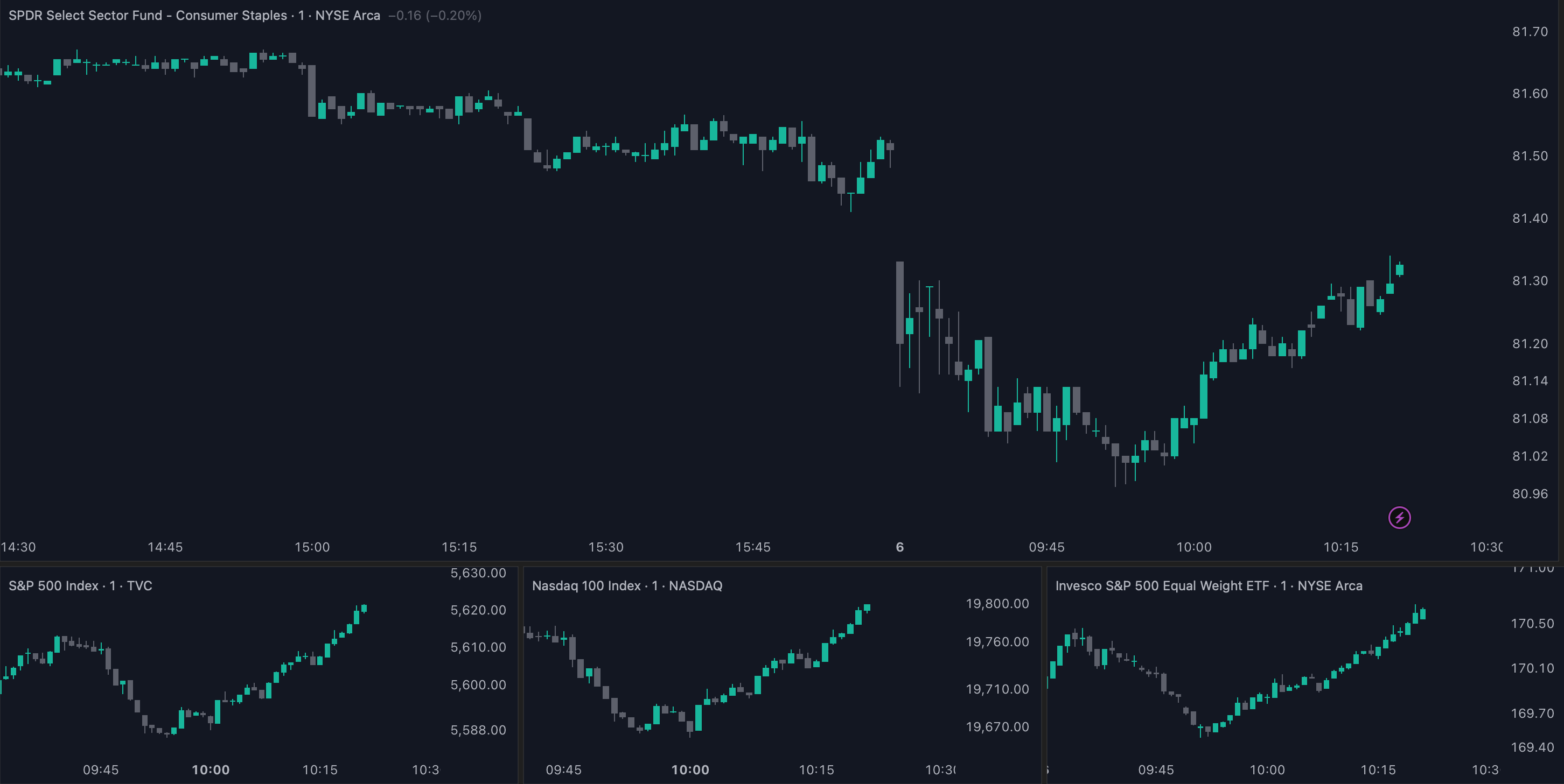 - Stock correlates with the overall market performance: QQQ, SPY or RSP